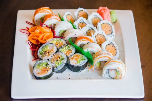 Veggie Maki (6 pcs), Avocado (8 pcs) and Veggie Fusion (8 pcs). Veggie Maki (6 mcx), Avocat (8 mcx) et Veggie Fusion (8 mcx)
